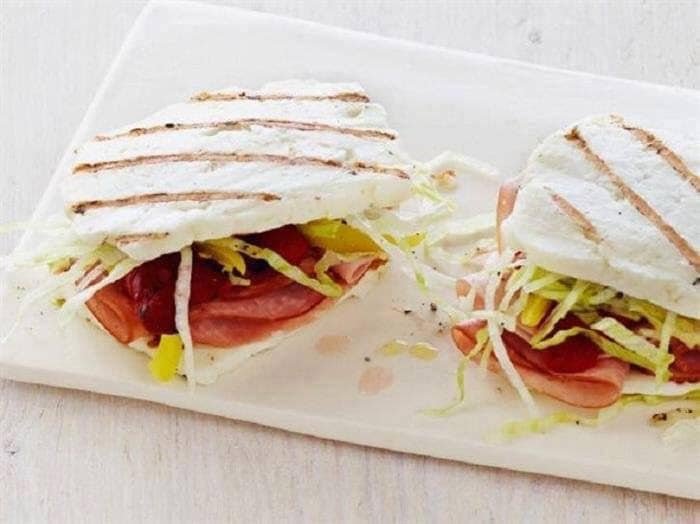 Corte un pimiento por la mitad y quítale la parte superior. Agréguele tiras de aguacate, lechuga o tiras de algas y rebanadas de pavo.