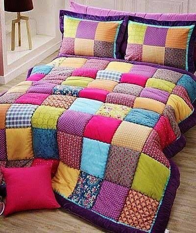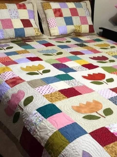 1 . Acolchado o cubrecama decorado con retazos de tela.