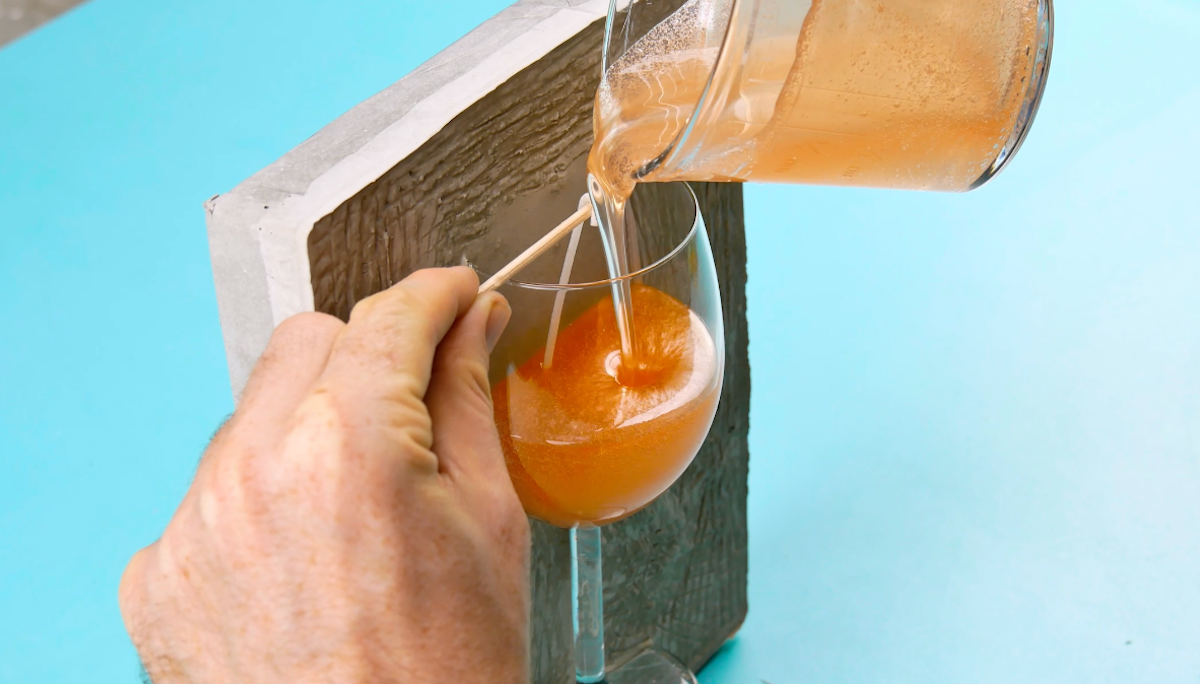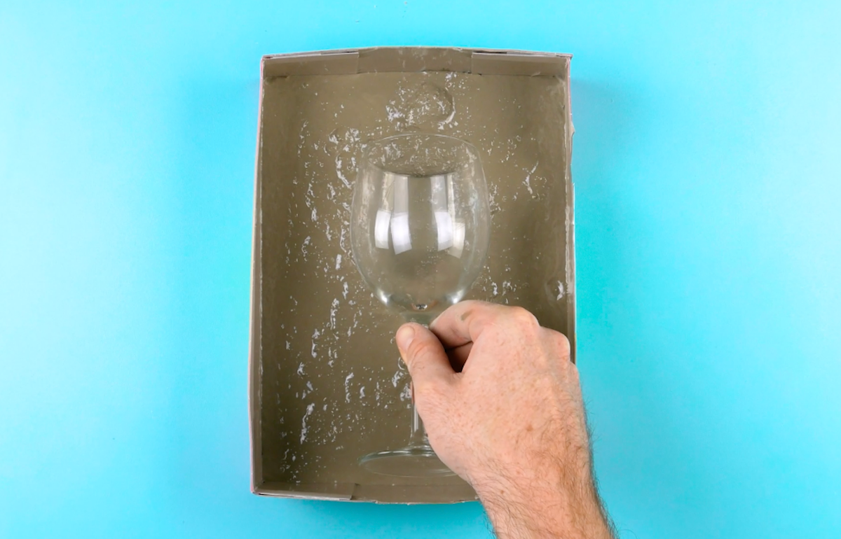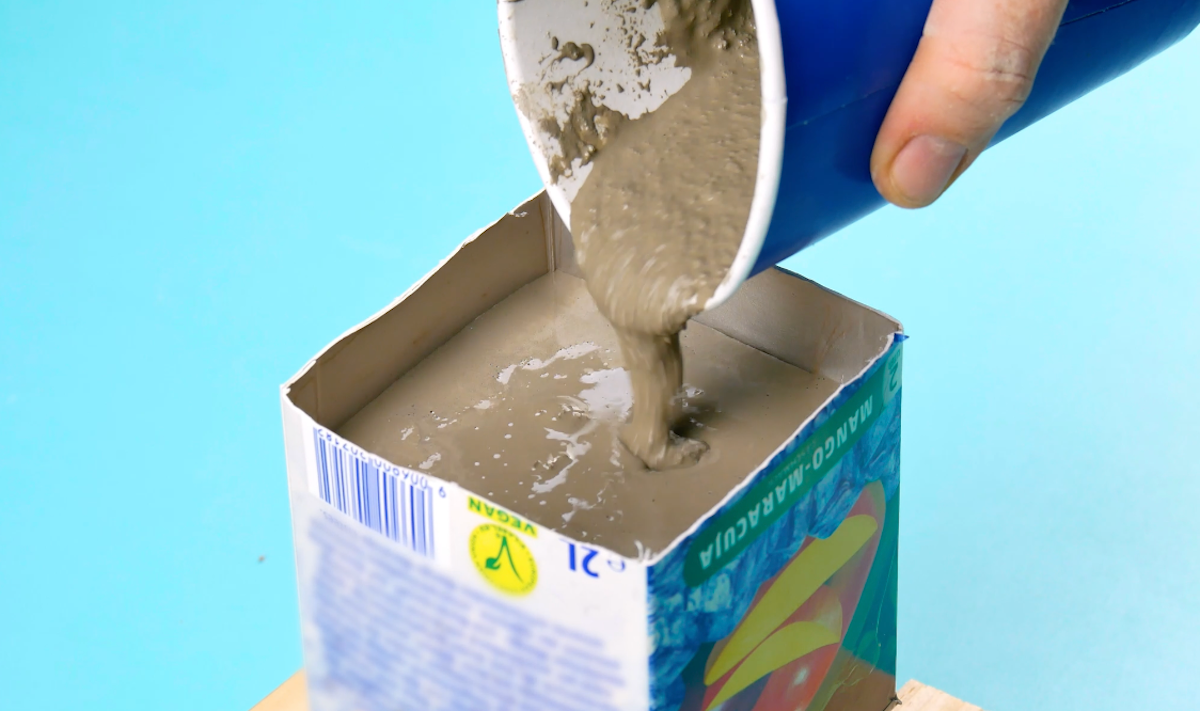 1.1. Vierta el cemento en la caja de cartón y coloque una copa de vino en el medio.