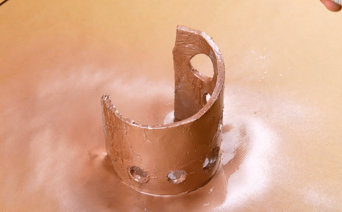 5.4. Retire el papel pergamino y el recipiente de vidrio y rocíe con pintura la pieza de cemento moldeada.