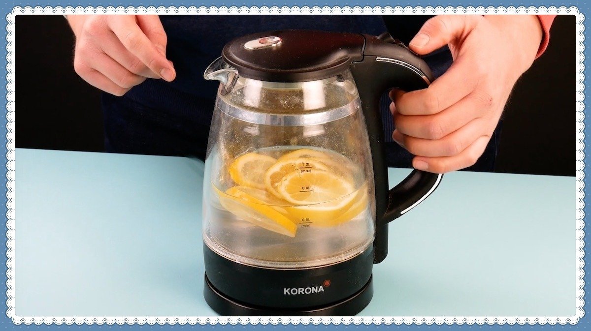 ¿Su tetera o cafetera está llena de manchas de calcificación? Así que aquí está la solución: agregue unas rodajas de limón al agua y hierva. Después de eso, ¡el hervidor estará impecablemente limpio!