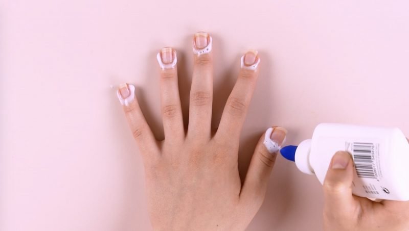 Solo pon un poco de pegamento alrededor de tus uñas y déjalo secar brevemente.