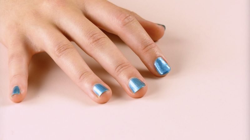Por último, cubre con esmalte de uñas transparente o base y deja secar. ¡Tu esmalte de uñas alternativo está listo!