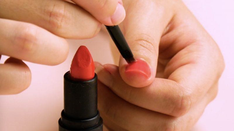 Si tu esmalte de uñas es viejo y tiene grumos, es imposible usarlo. Pero si no tienes otro, puedes usar un labial y un pincel para pintarte las uñas.