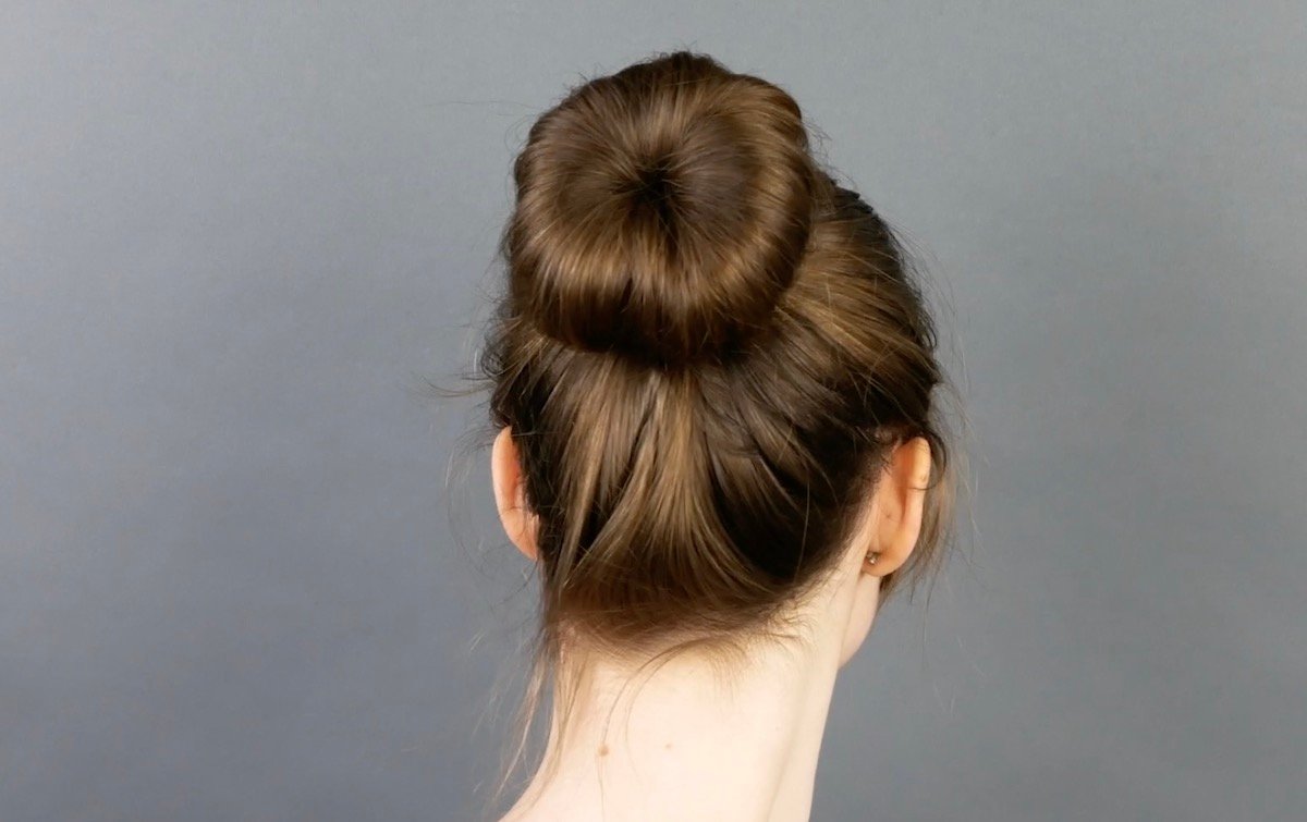 Si quieres puedes sujetar la forma de la dona con algunas puntadas. Ahora la puedes usar enrollando tu cabello en el para hacer este hermoso y rápido peinado.