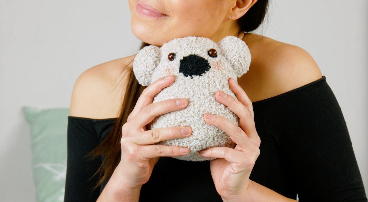 Puedes convertir tu calcetín en un lindo koala en solo unos pocos pasos. Voltea el calcetín al revés, cóselo debajo del talón y córta la punta. Vuelve a colocar el calcetín al revés, llénalo con fibra y cosa el extremo abierto; debe ser redondo.