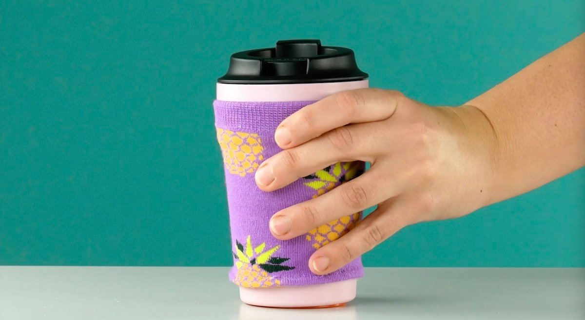 Las tazas pueden estar muy calientes al tacto cuando se llenan con bebidas como café o té. Para evitar quemarse, ¡usa un calcetín!