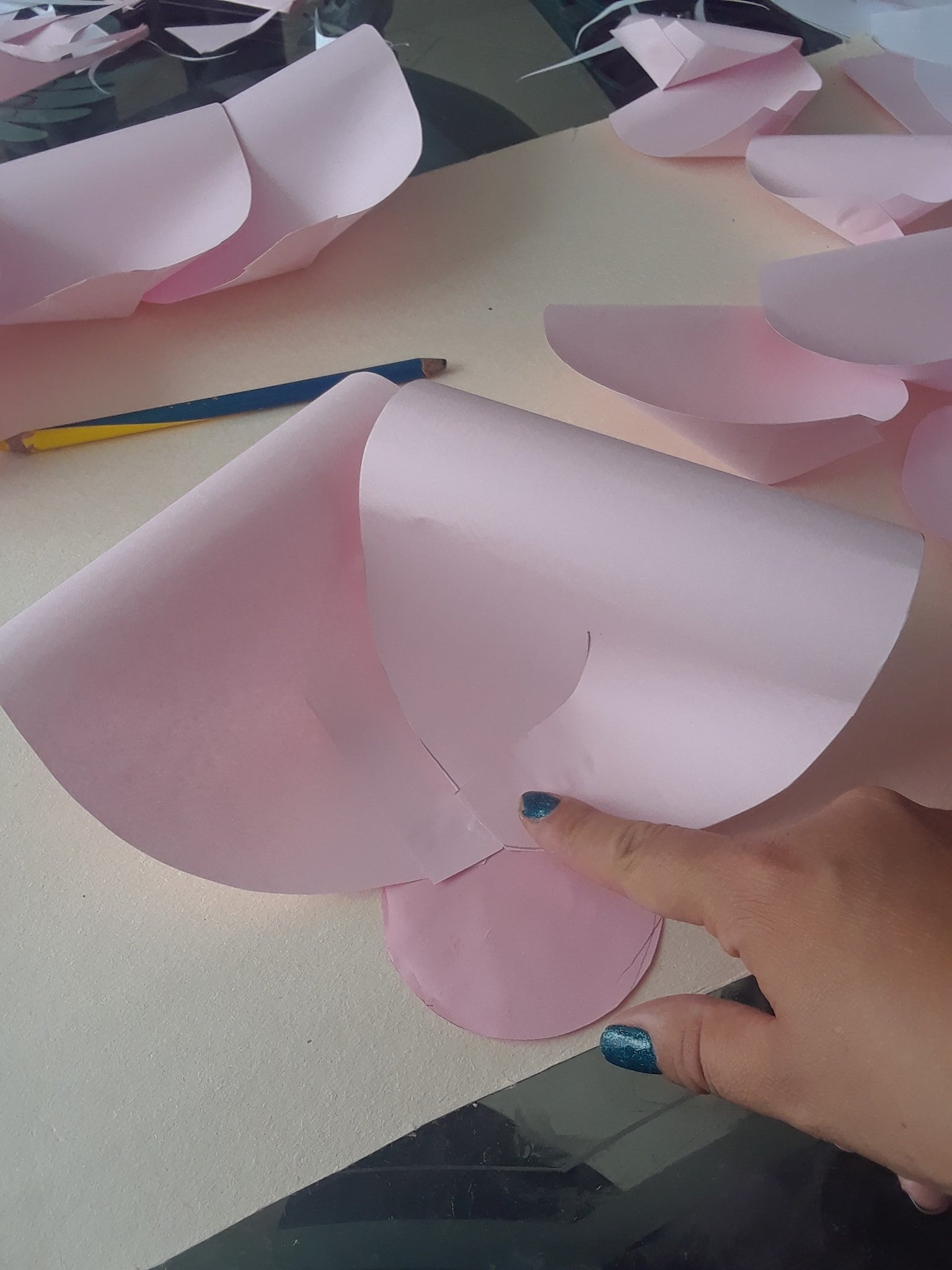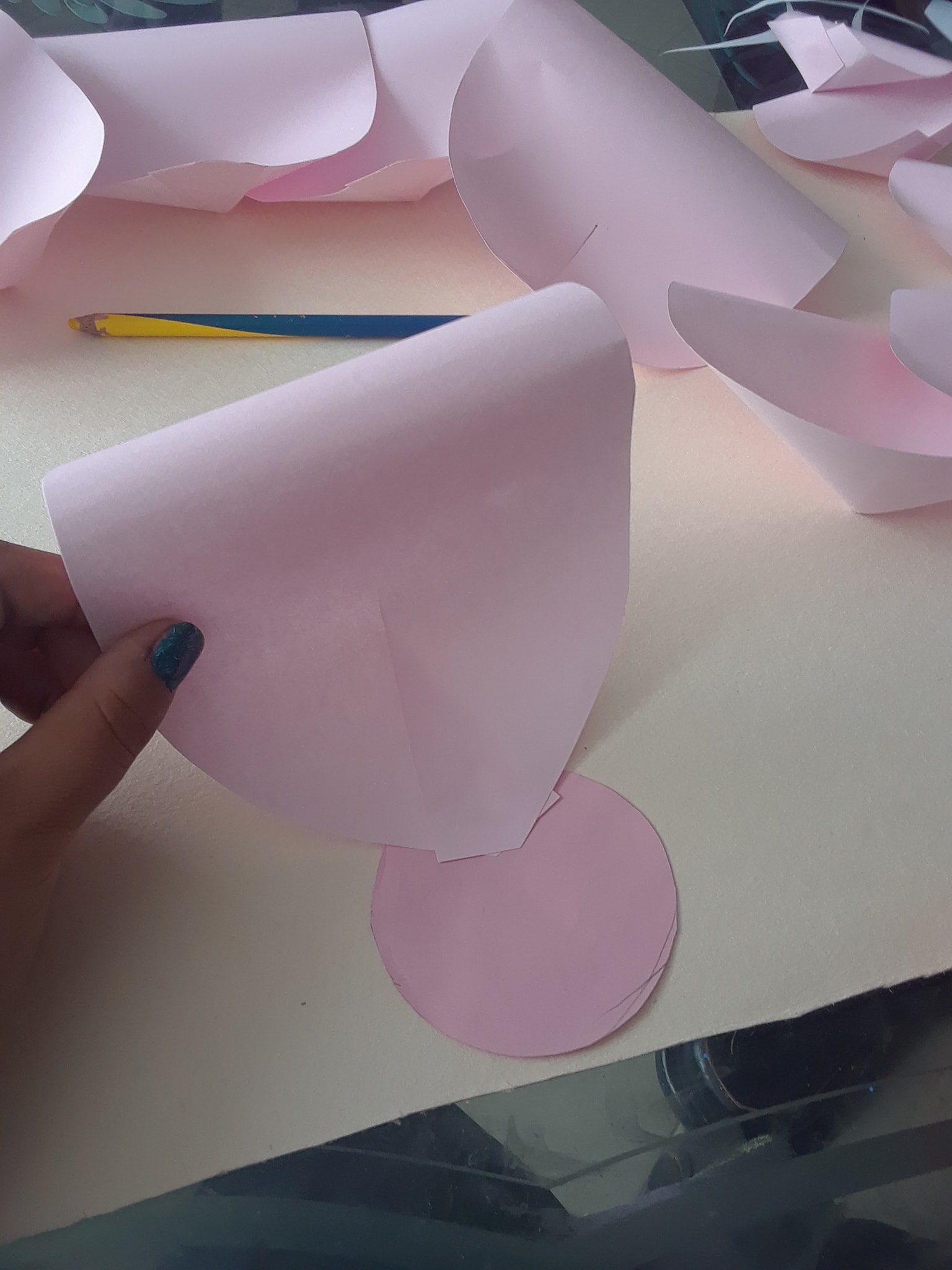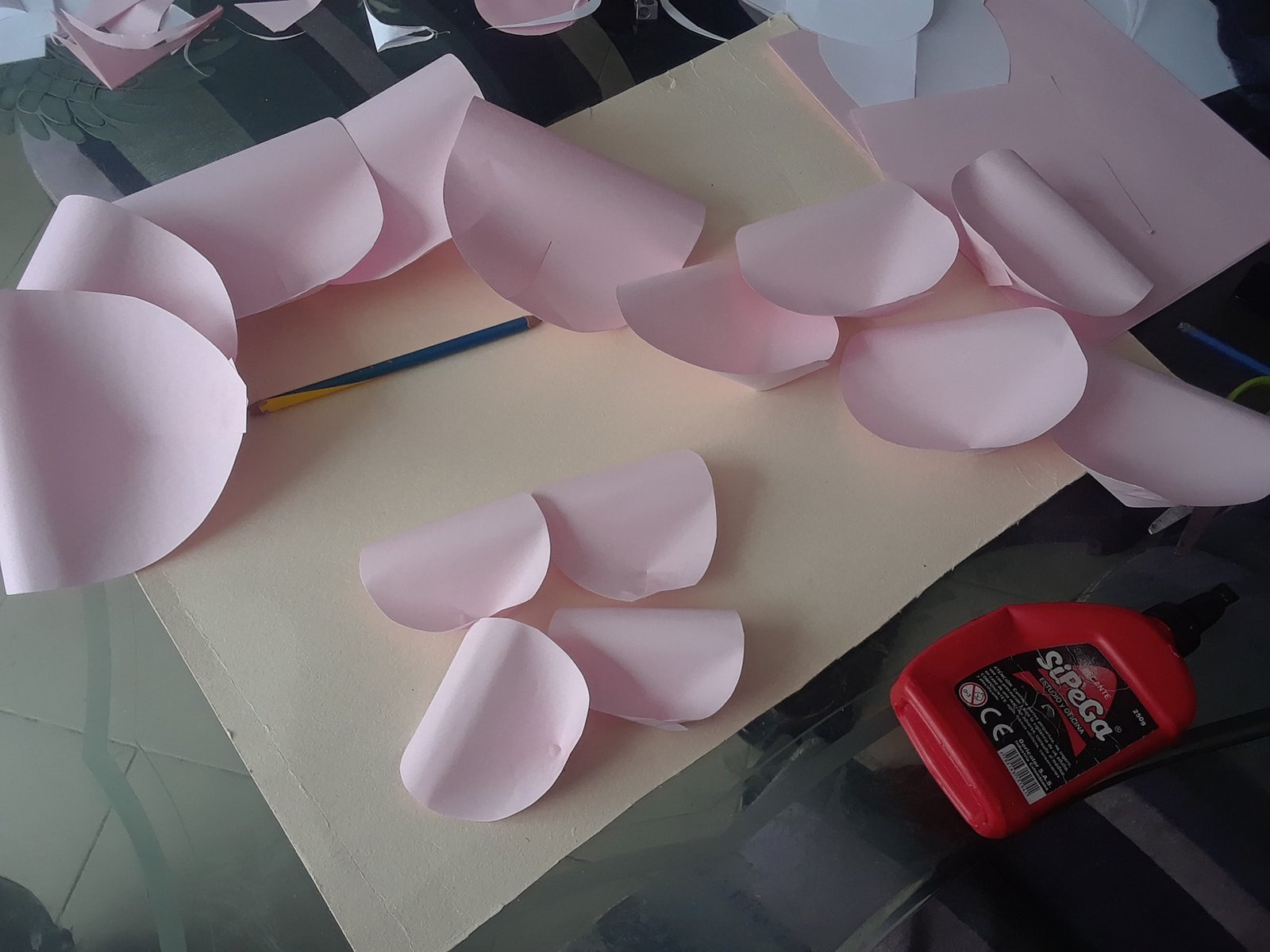 Recortamos un círculo y empezamos a pegar los pétalos,