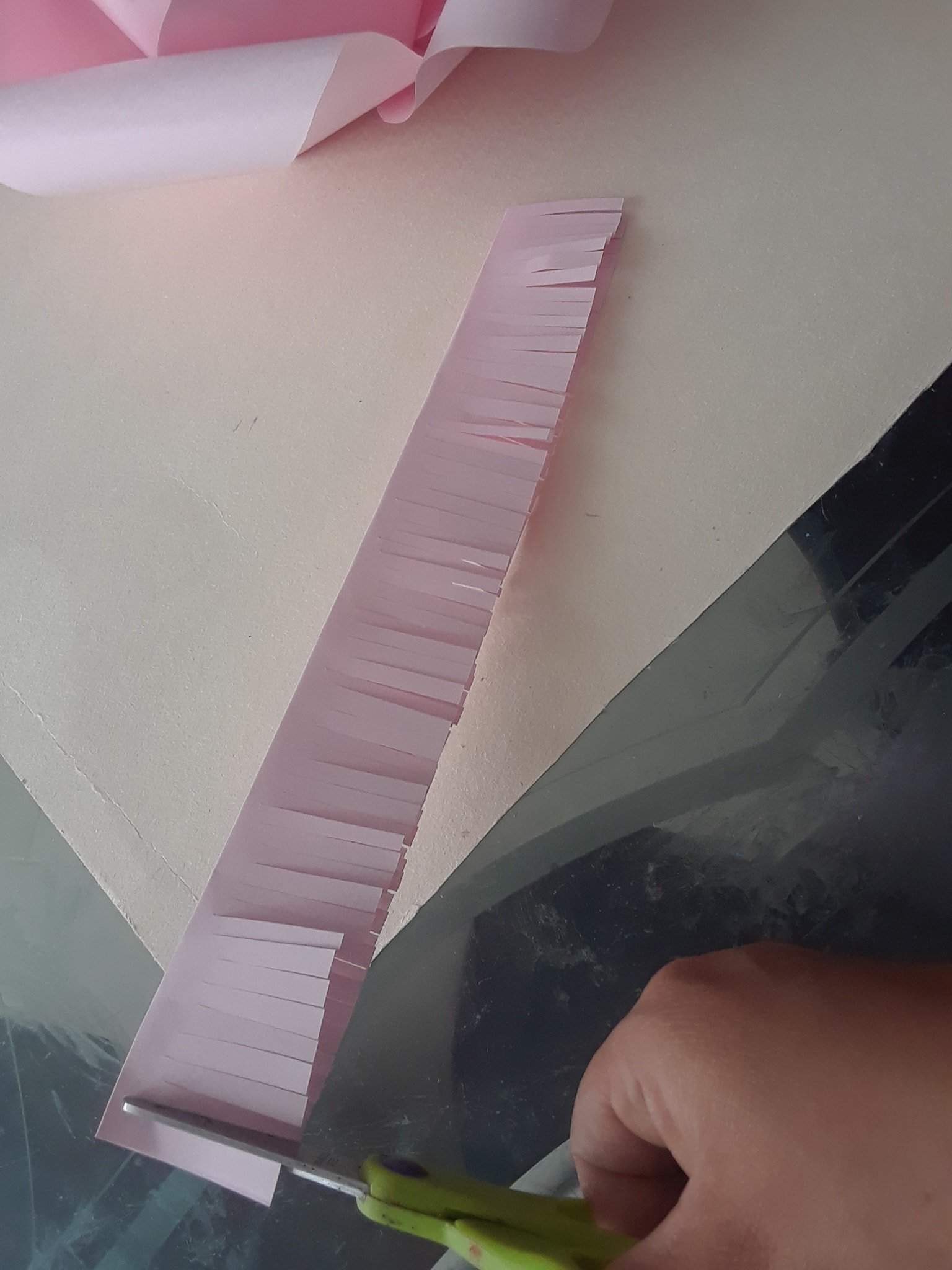 Cortamos pestañitas, sin llegar al final de la tira