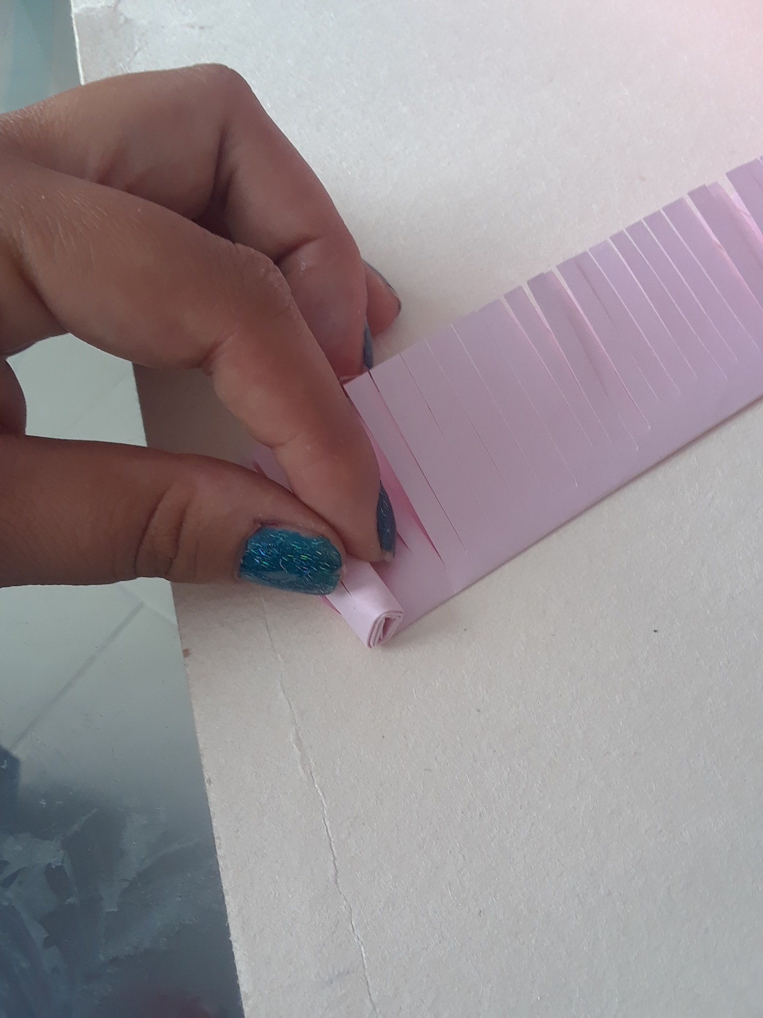 Vamos enrroscando la tira y poniendo pegante