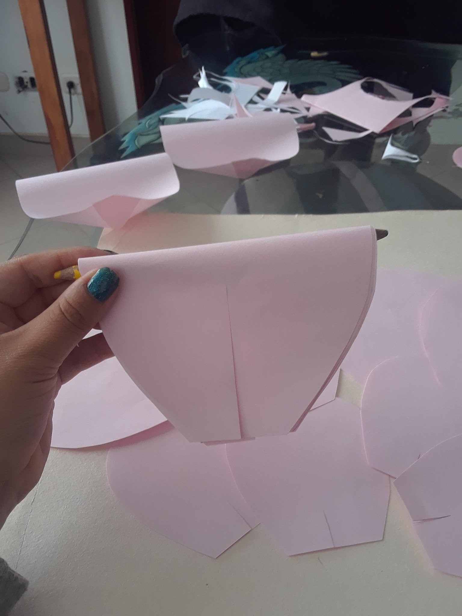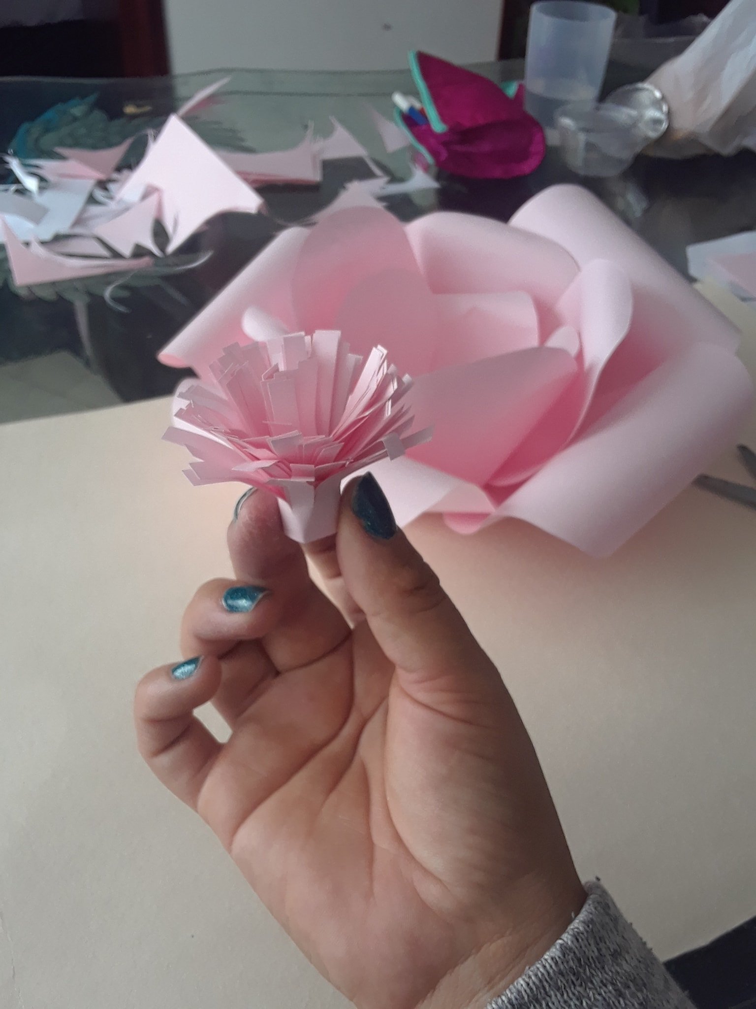 Y por último las pegamos en el centro de la flor, con abundante pegante