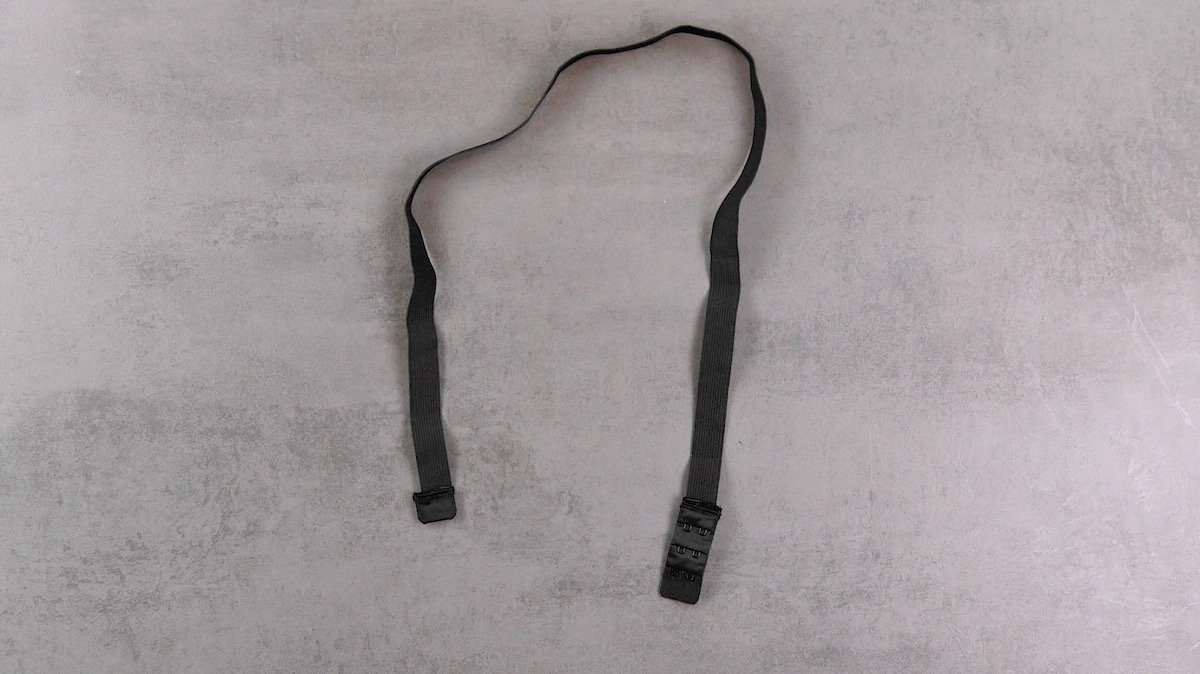 Ahora envuelva el elástico alrededor de su cuerpo y sujételo a su sostén para que el broche y las correas ya no sean visibles.