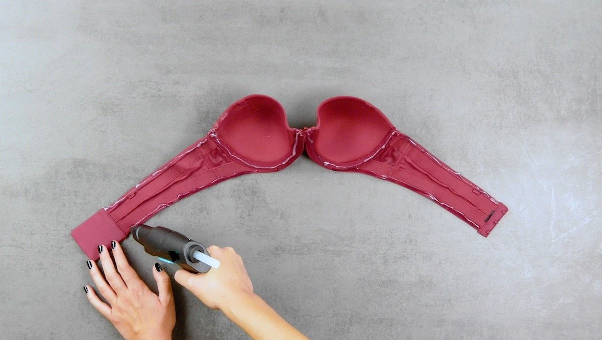Si su sostén sin tirantes se sale constantemente de su lugar, simplemente aplique un poco de pegamento caliente en los bordes interiores del sostén. ¡Una vez seco, los contornos del pegamento le darán más adherencia a la pieza!