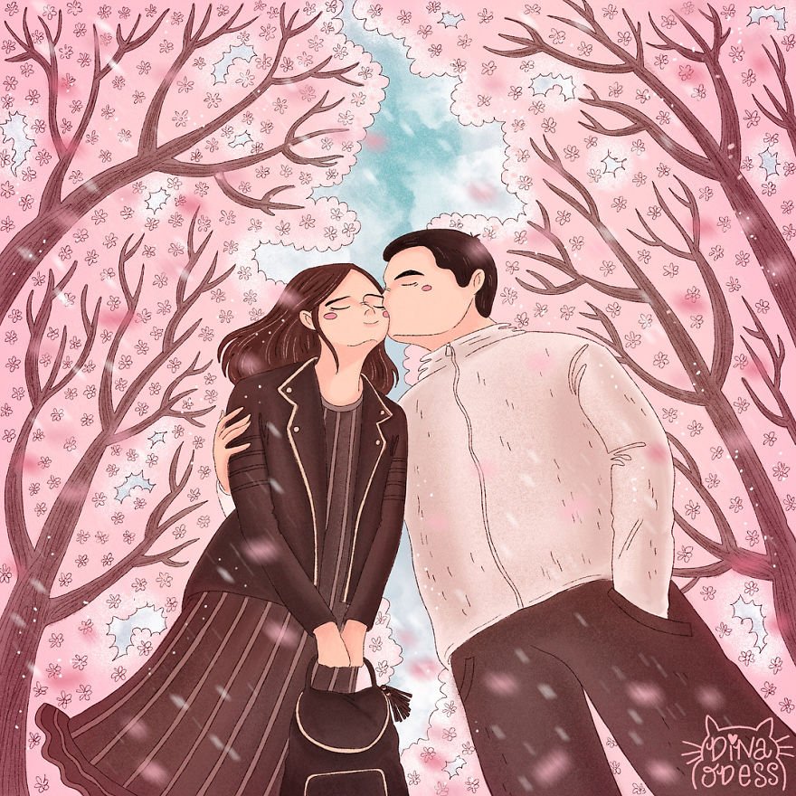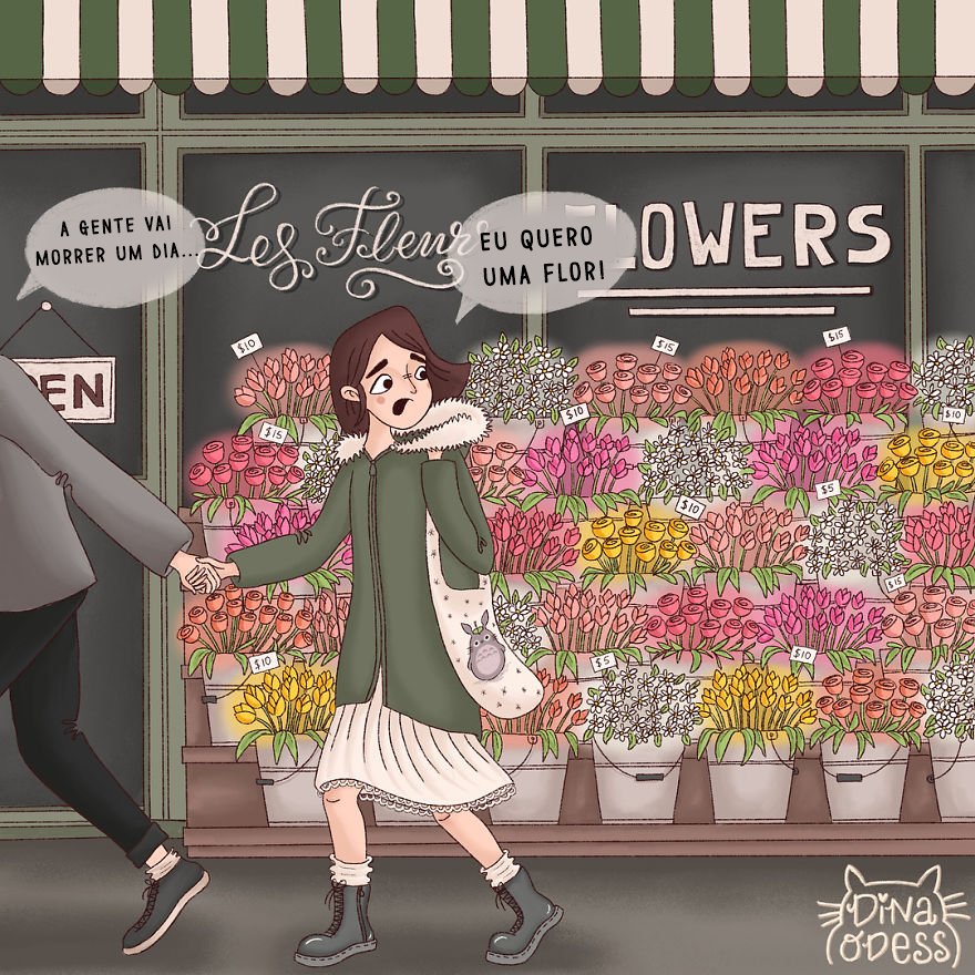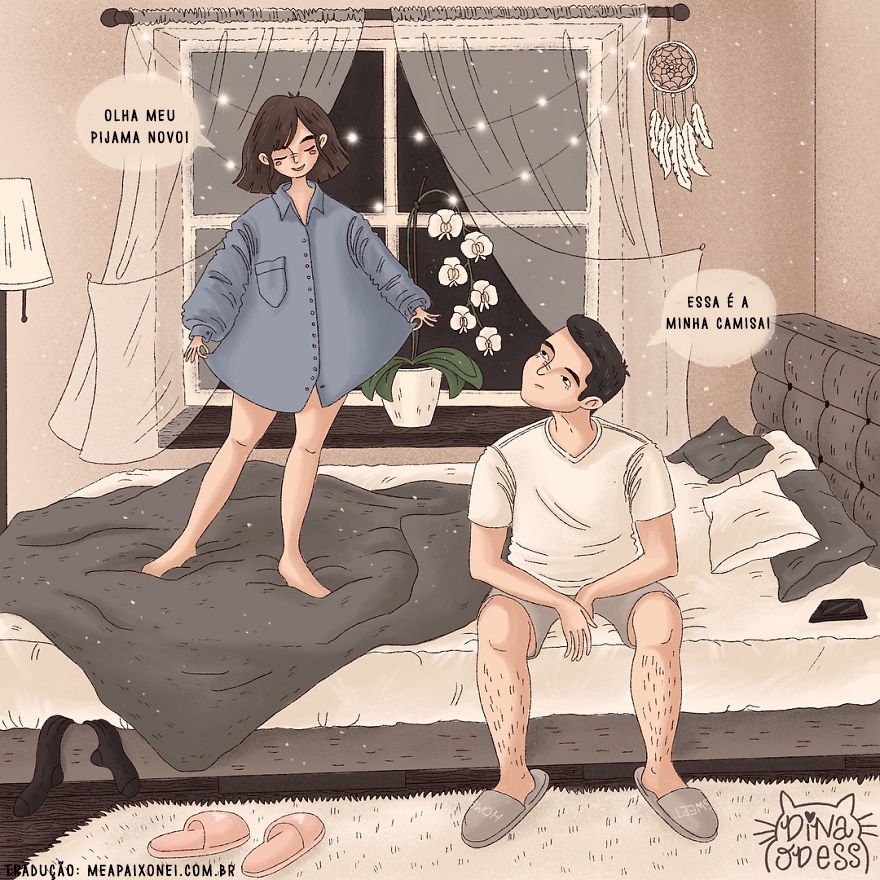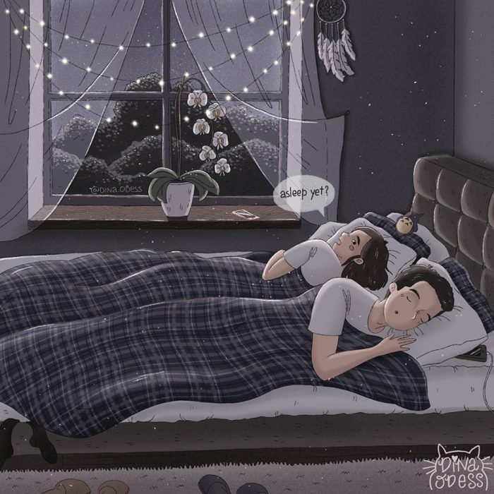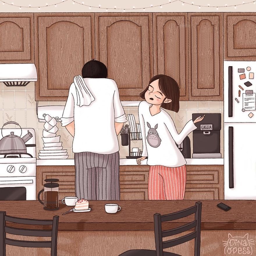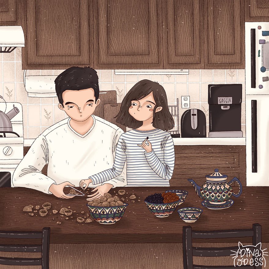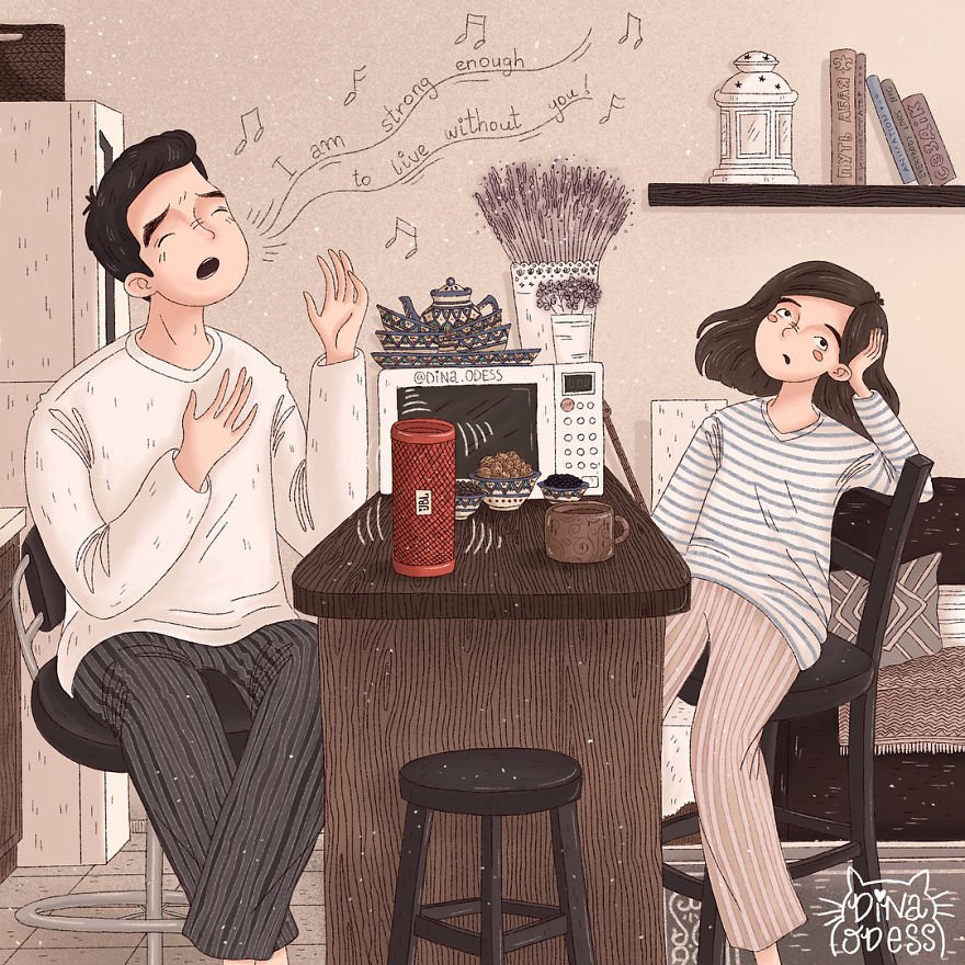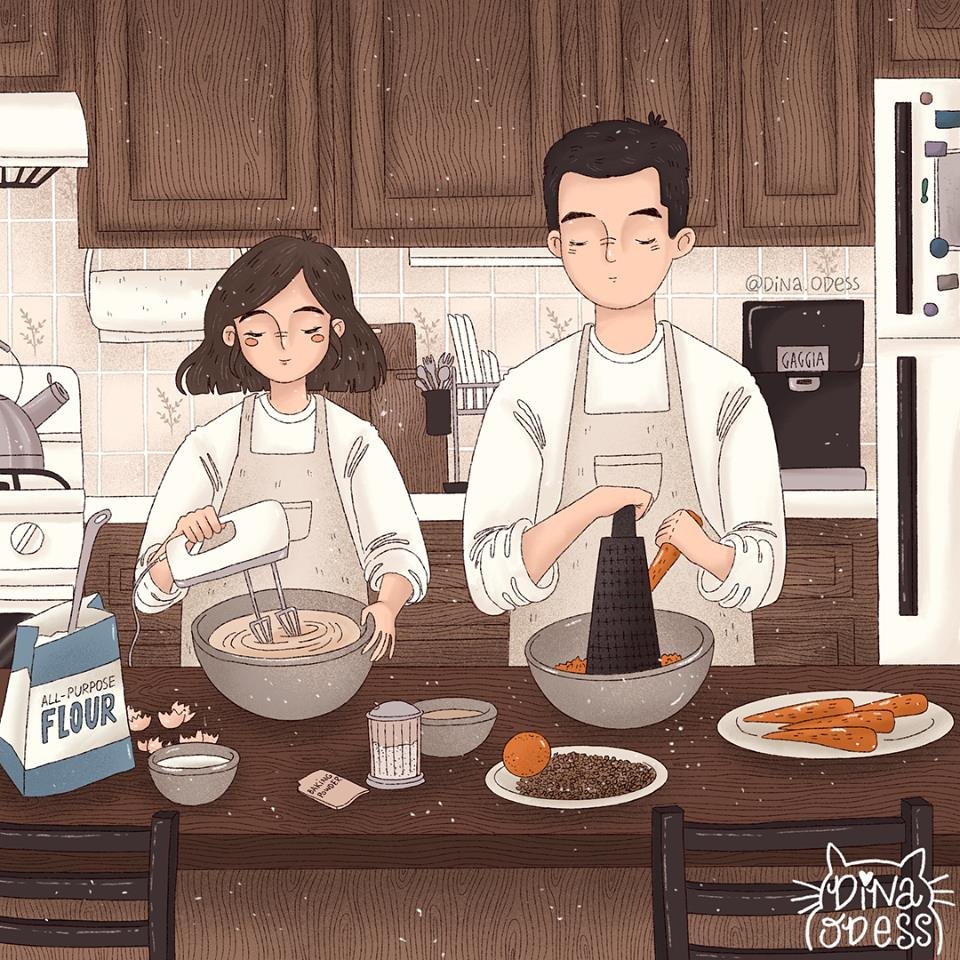 La ilustradora Dina Odess , de 27 años, ha creado una hermosa serie de ilustraciones que representan las alegrías de vivir con su esposo. El artista es de Kazajstán, pero vive en Nueva York: