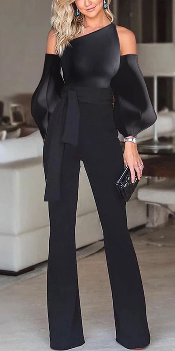 Otra de las opciones de moda en vestidos monos de mujer madura son monos elegantes negros.