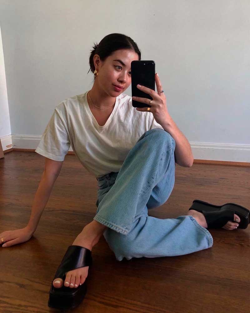 En primavera y verano, los zapatos gruesos y gruesos nos ofrecen una forma cómoda de pasar el día con estilo. Con estos zapatos, no estamos solo en el lado de la comodidad. También se ven geniales, especialmente combinados con jeans acampanados.