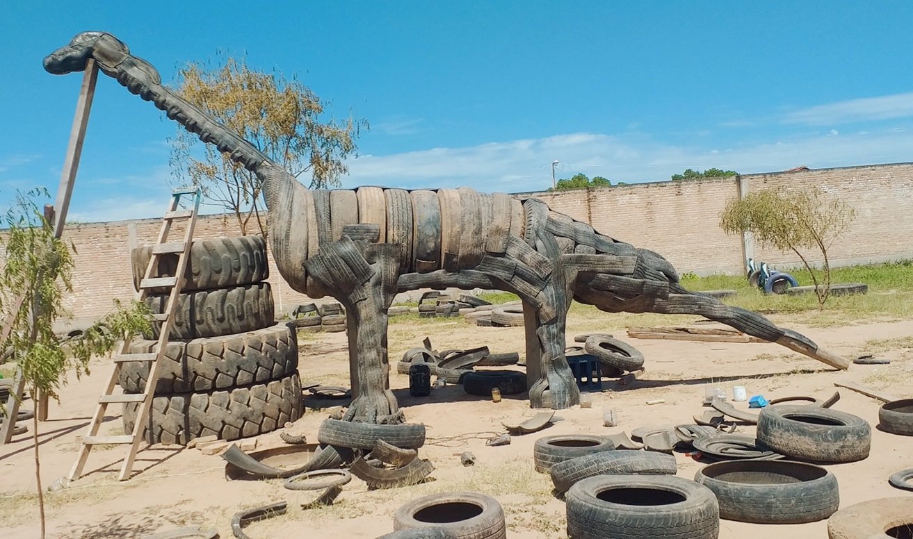 Amigos recicladores un dinosaurio de 9 mts x 7 mts. más de 500 neumáticos reutilizando en esta obra SALUDOS 🎨♻️🖌🦕🇦🇷