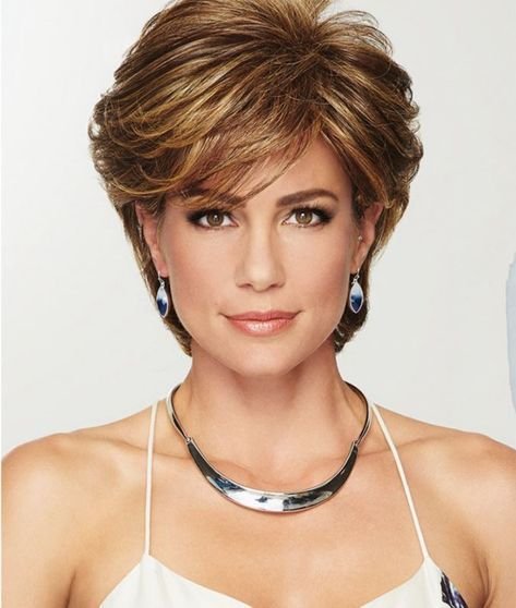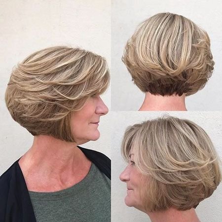 Este corte de pelo es sensual, agregando flequillo dulce y tenue en la parte frontal de la cara. El flequillo se ve maravilloso asimétrico. Un corte de pelo elegante y atemporal para mujeres mayores de 50 años.