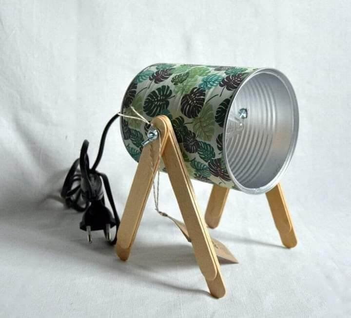 Si tiene latas grandes, puede reutilizarlas como una lámpara en la cocina sobre la mesa del comedor.