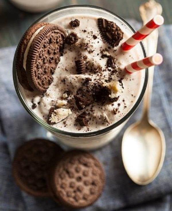 - Batir todos los ingredientes en la licuadora con 6 galletas oreo luego servir en los vasos